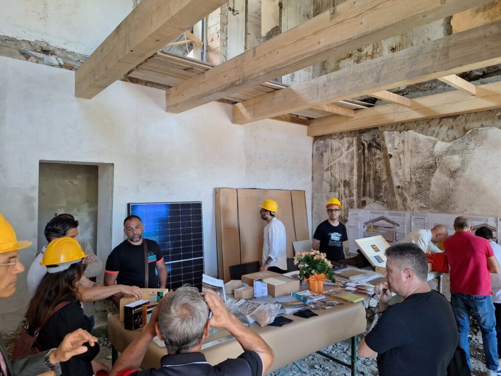 The workshop concluded with engineer Matteo Gualtieri, legal representative of the executing company MG srls. The start-up owner, awarded last December by the Chamber of Commerce for innovative materials used, focused on both positives and challenges of the Bruno site. On the negative side, difficulties arise in the local construction market in sourcing such materials, often available only by special order. On the positive side, the company benefits economically from natural materials, both in waste disposal savings and ease of site organization and safety, avoiding the need for personnel protection equipment and complicated application procedures.